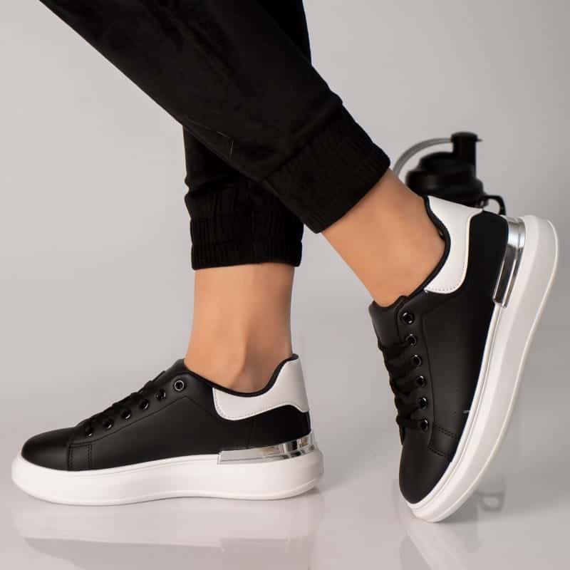 ADIDASI DAMA NEGRU ALB PIELE ECOLOGICA Marisa,Transport gratuit peste 300 lei, retur in 14 zile
