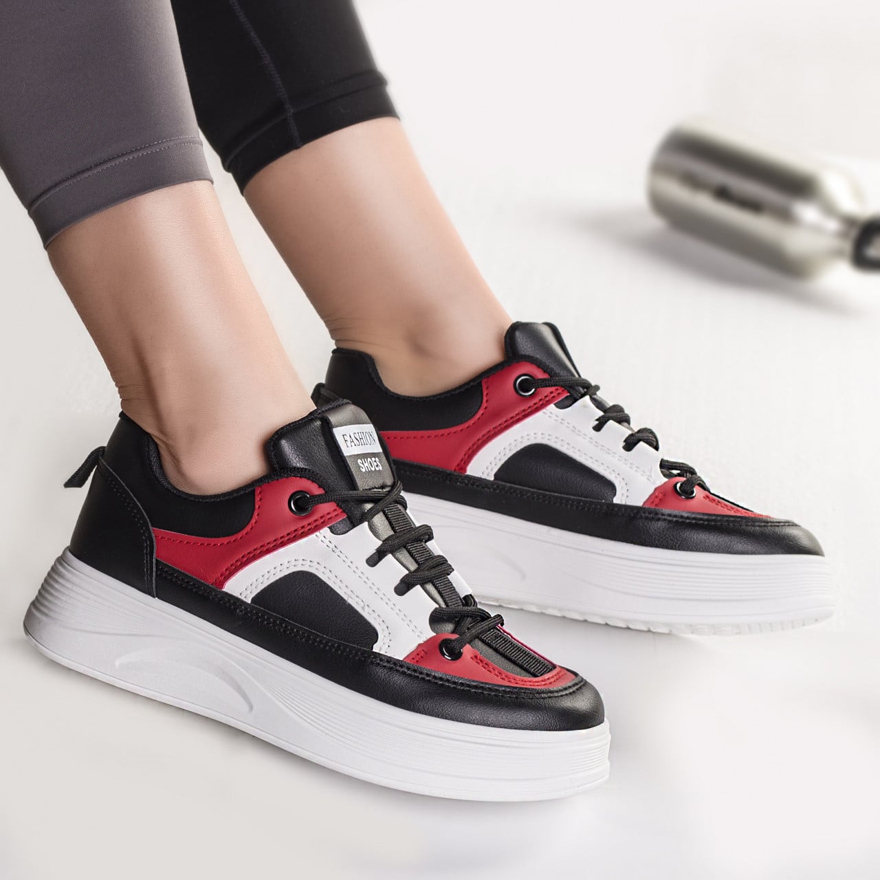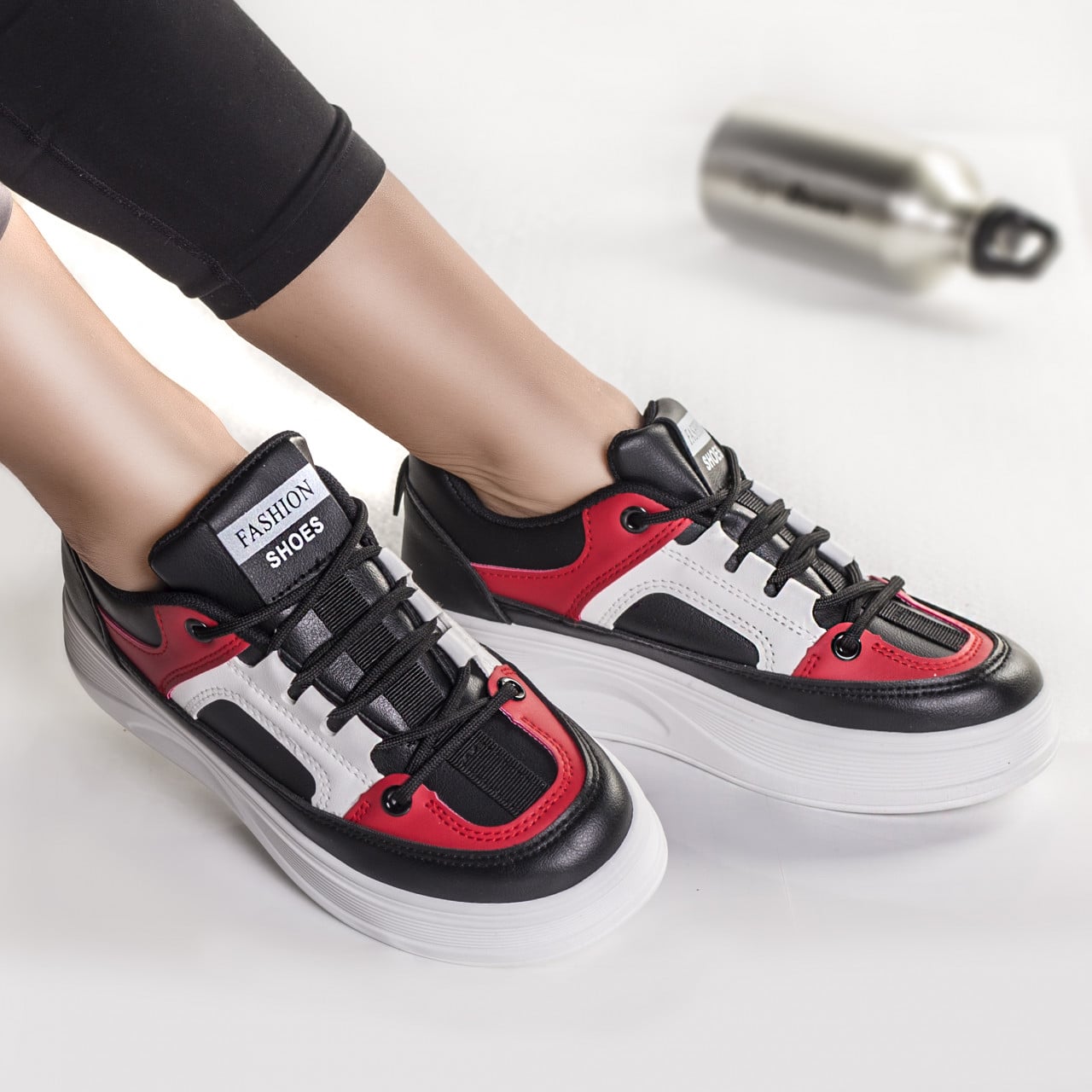 Specification: ADIDASI DAMA PIELE ECOLOGICA NEGRU CU ROSU Rimas