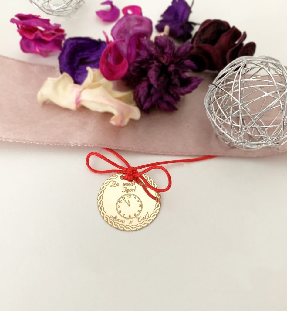 Pastreaza cele mai dragi amintiri cu ajutorul unui accesoriu elegant si cu o semnificatie aparte. Banutul de botez este un „must have” cand ne gandim la primele amintiri ale bebelusului si este cu siguranta cel mai frumos cadou din partea nasilor!Puteti alege din multitudinea de elemente ce se pot grava pe banut, devenind astfel un cadou unic, personalizat!Specificatii bijuterie: Banut de botez sau mot din aur galben 14K;Circumferinta banut: 20 mm;Fiind executat pe baza de comanda, banutul se poate confectiona atat din aur alb cat si roz de 14K. ? Textul se poate adapta cerintelor clientului, putem chiar sa se modificam? designul conform dorintei dumneavoastra ?Dupa plasarea comenzii veti fi contactat de un consultant pentru stabilirea detaliilor necesare realizarii si livrarii bijuteriei.Primiti banutul de botez in ambalaj elegant cu certificat de garantie si factura fiscala. Daca alegeti varianta aurului alb sau roze 14K, va informam ca toate componentele bijuteriei sunt din aur galben 14K galvanizate cu nuanta aleasa respectiv alb sau roze. Daca doriti din material dedicat respectiv aur alb sau roze 14k va rugam sa transmiteti consultantului la confirmarea comenzii si veti primi oferta de pret.