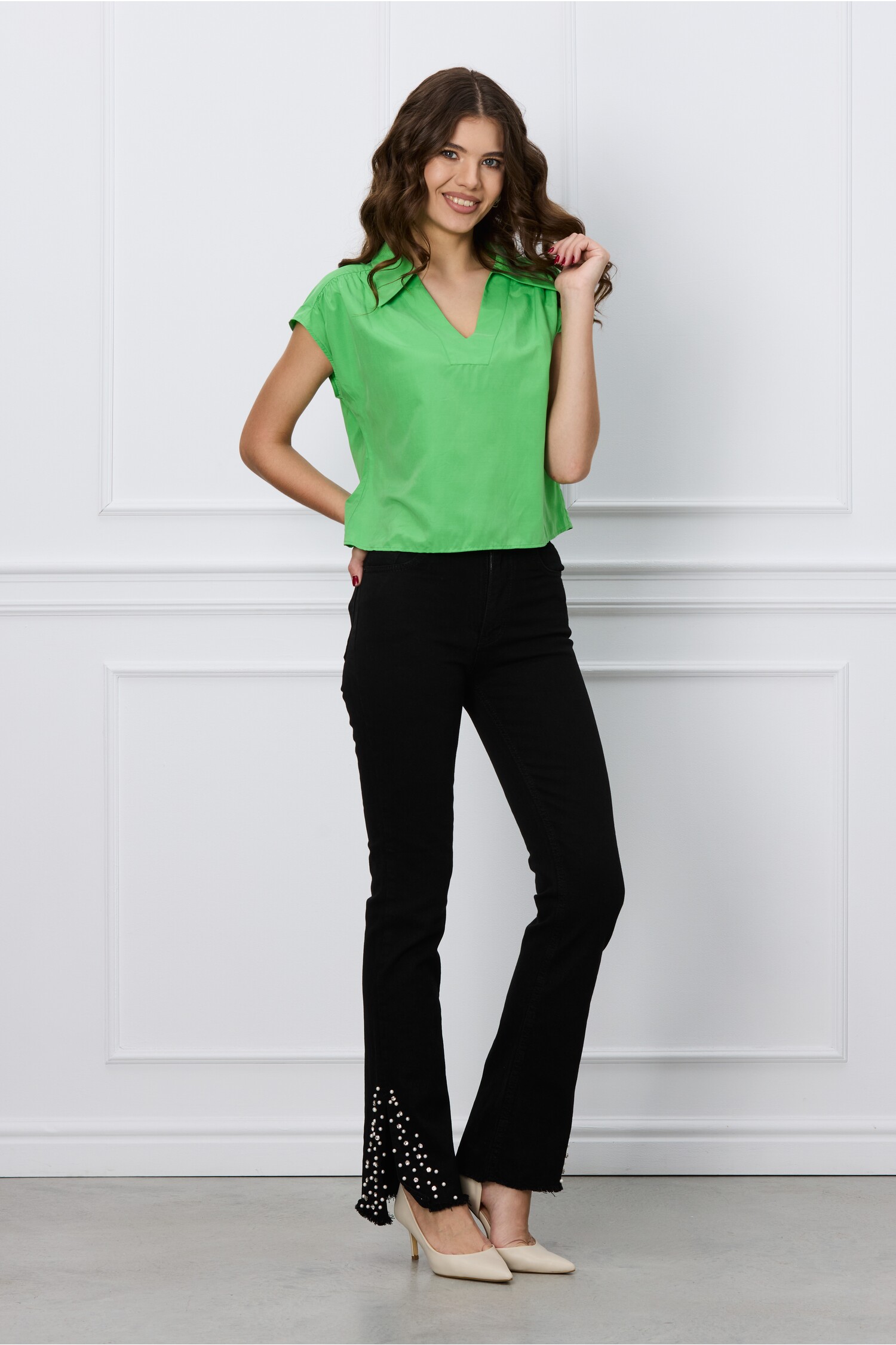 Specification: Blugi Aria negri cu perle si decupaj la baza