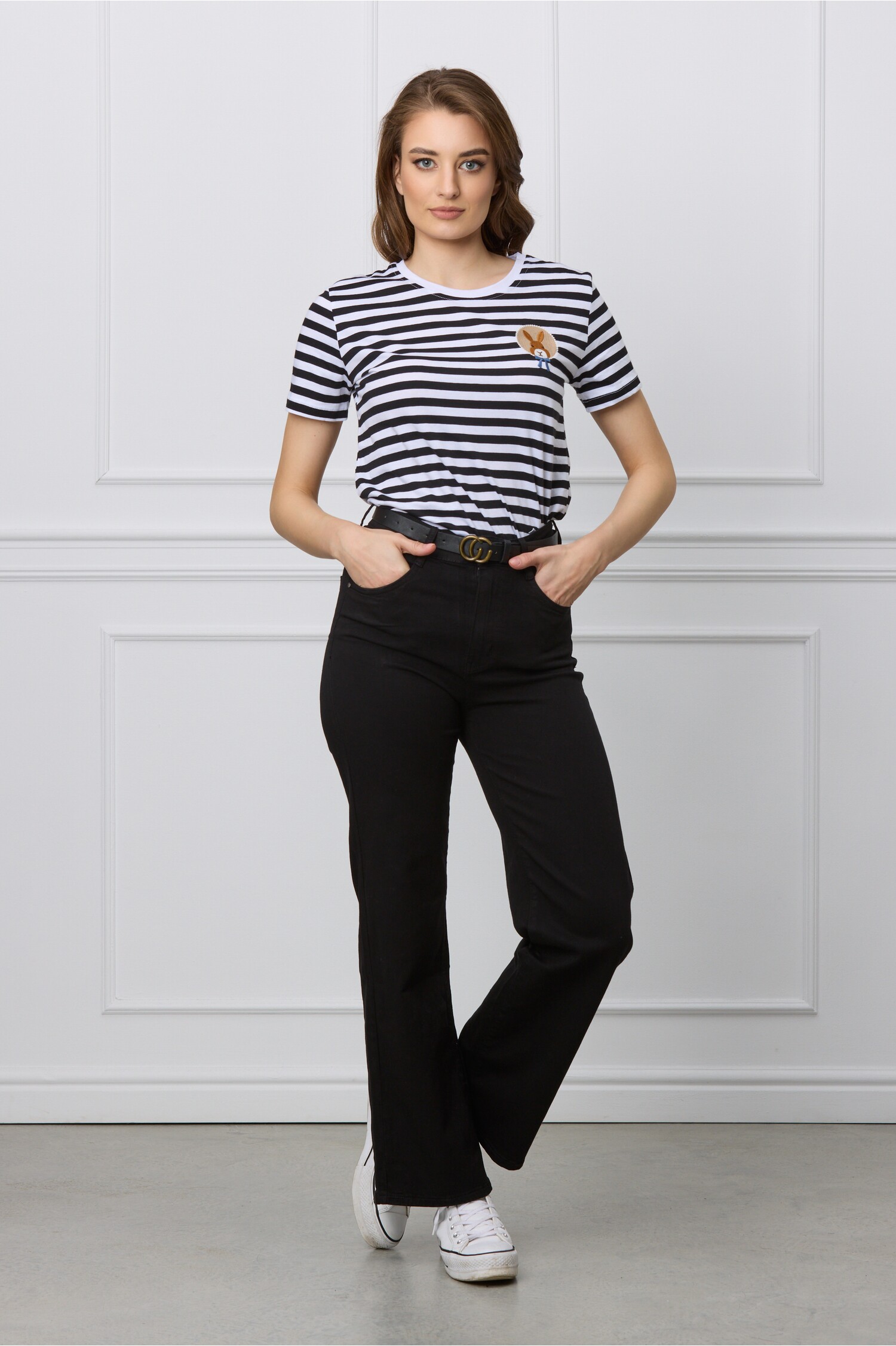 Specification: Blugi Carla negri cu croi drept si curea in talie