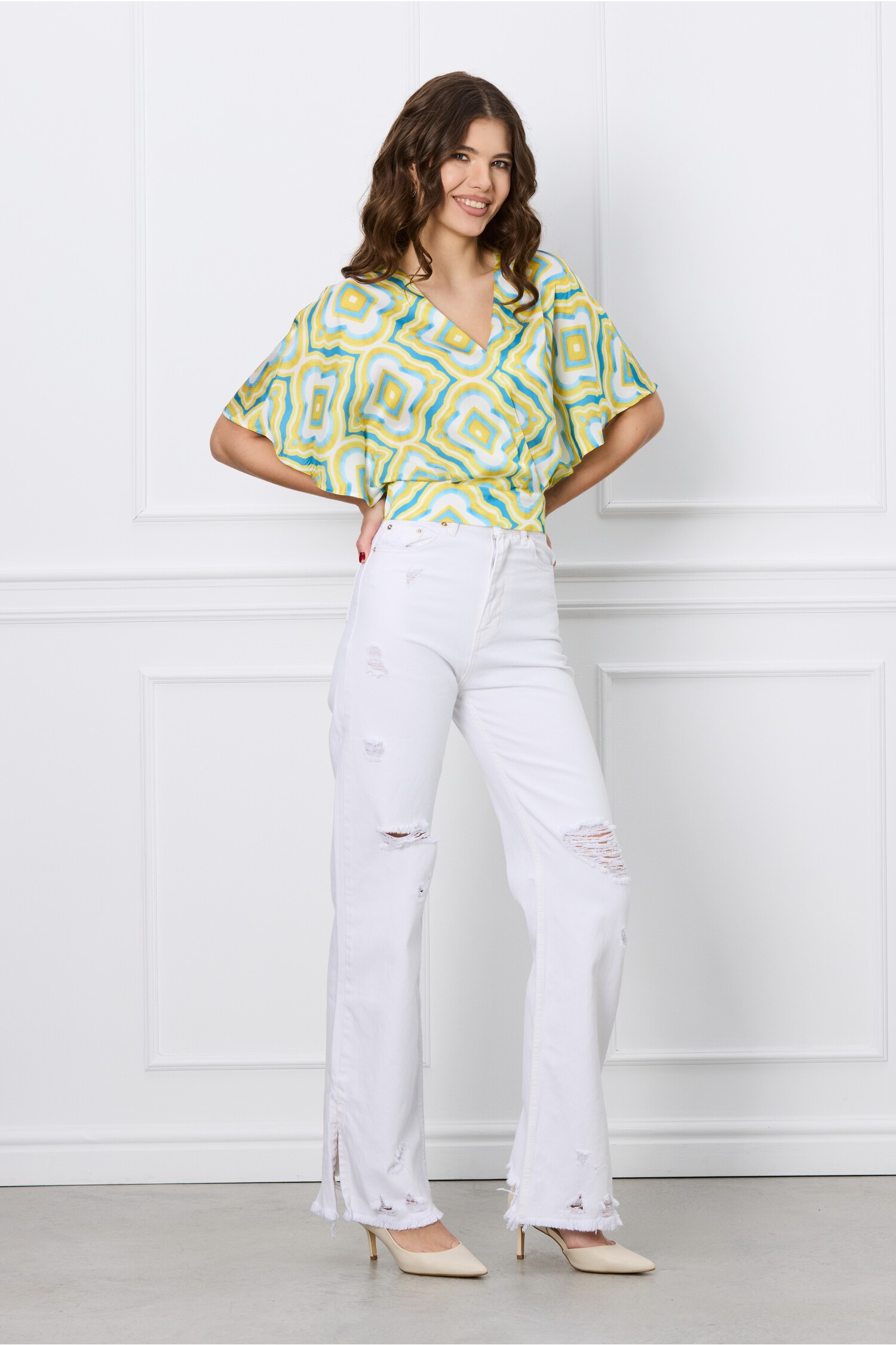Specification: Blugi Corina albi cu rupturi
