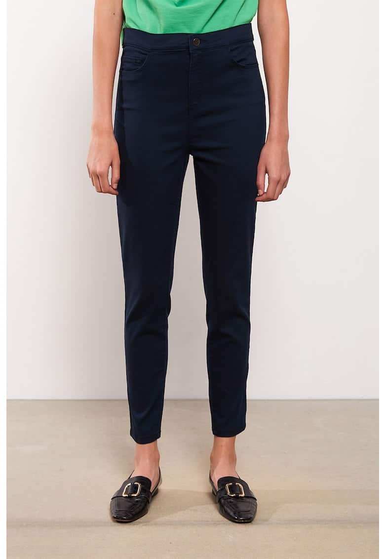 Caracteristici Culoare: albastru marin Stil: casual Material: sintetic – viscoza Imprimeu: uni Croiala: conica Lungime: crop Talie: inalta Sistem inchidere: fermoar Compozitie Exterior: 72% bumbac – 25% poliester – 3% elastan