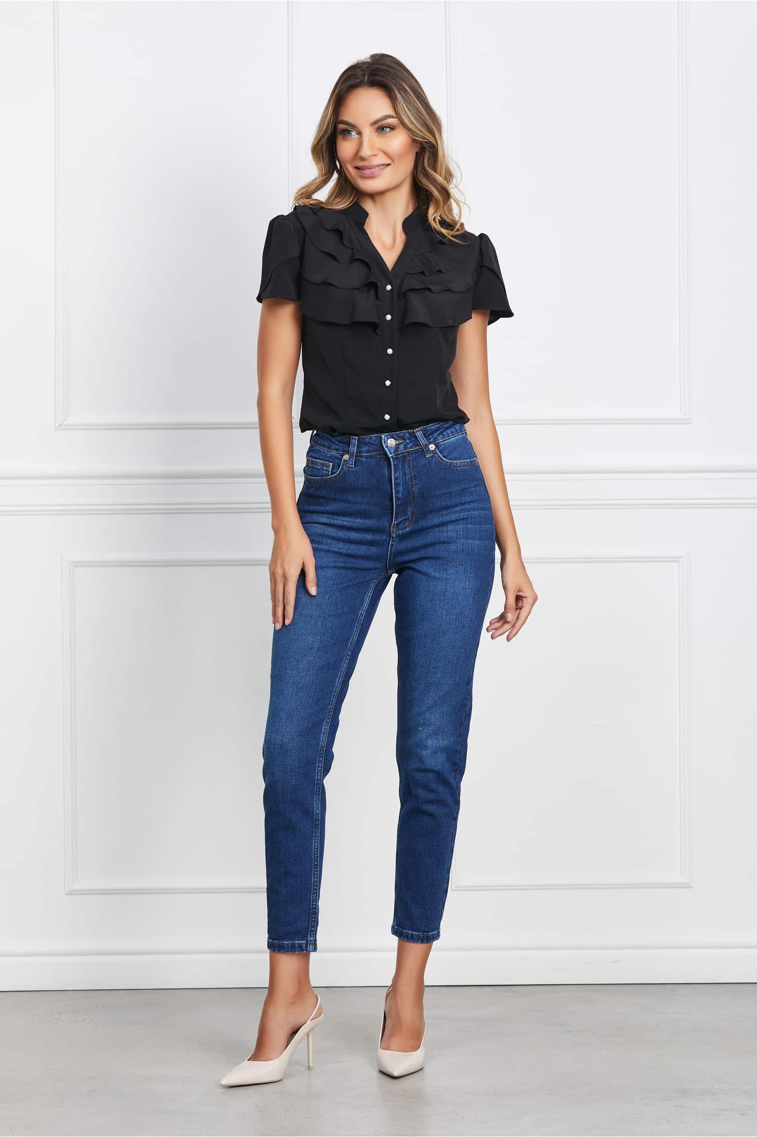 Blugi Danna albastrii cu talie inalta ! Transport si retur gratuite indifernet de valoarea comenzii!