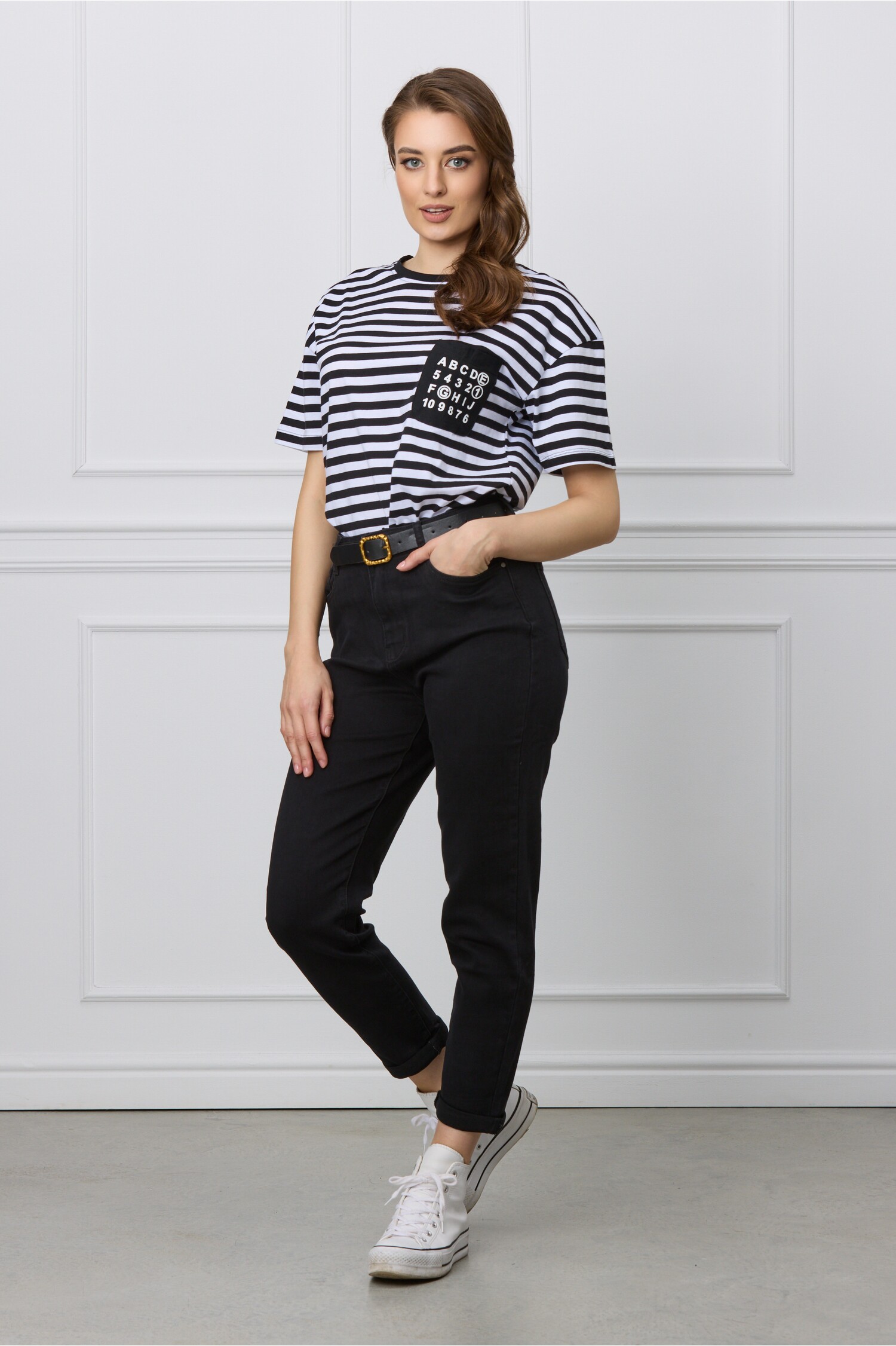 Specification: Blugi Mimi negri mom fit cu buzunare si curea in talie