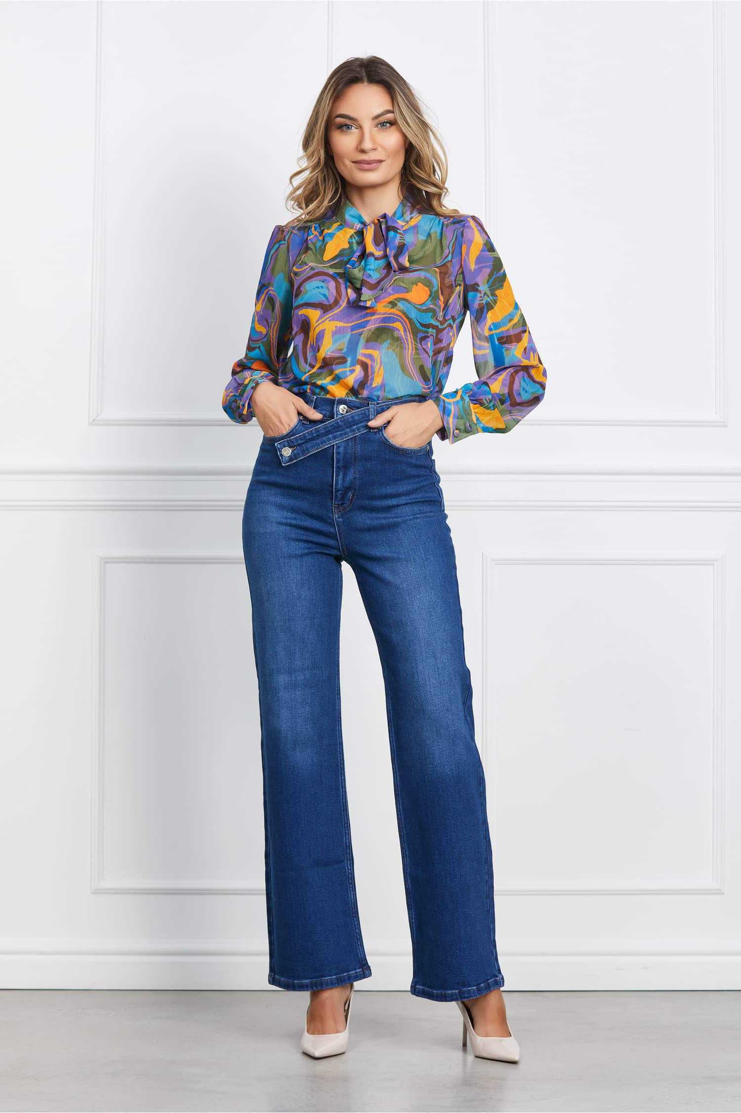 Specification: Blugi Nicky albastri evazati