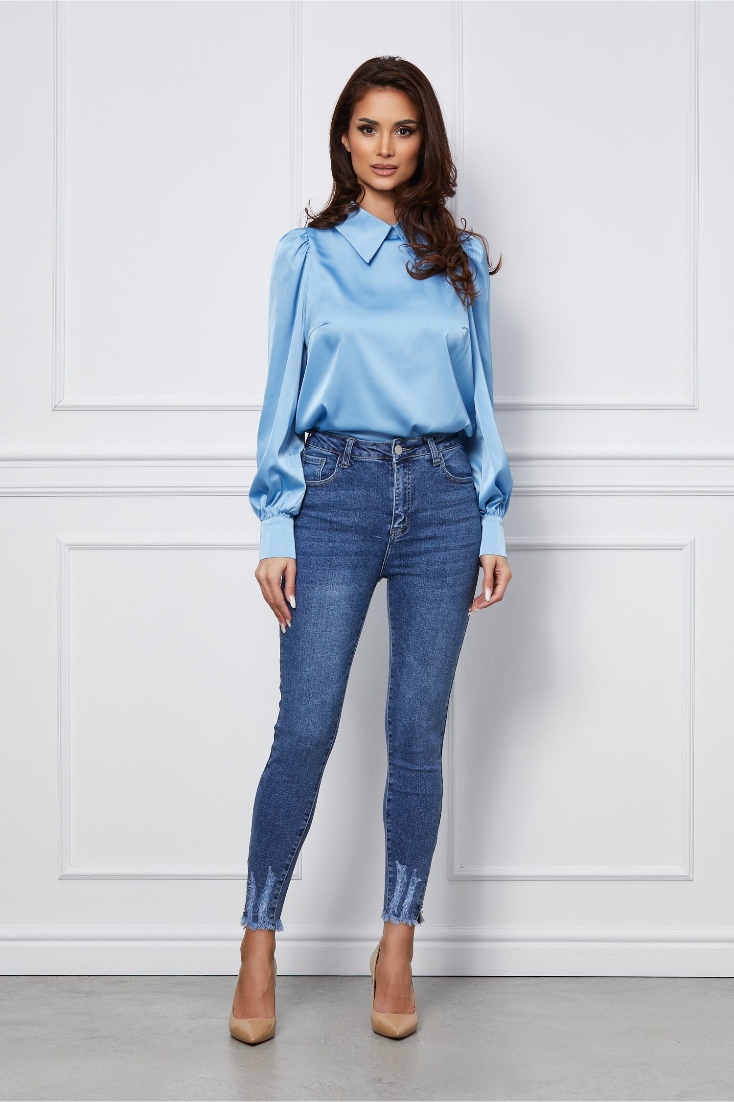 Blugi Sara albastri cu fermoar la baza! La acest produs ai transport si retur GRATUITE!