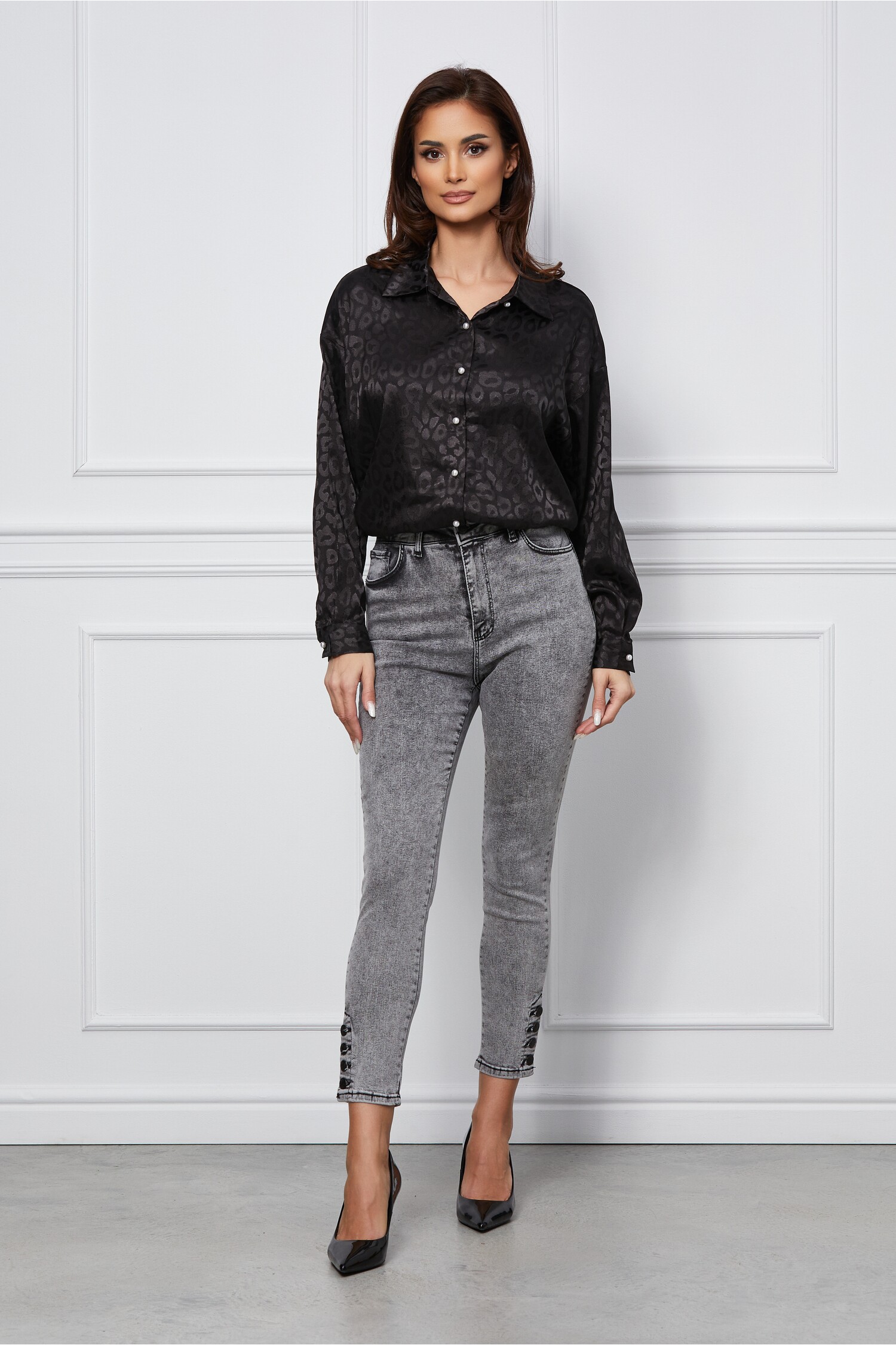 Specification: Blugi Sorina gri deschis cu nasturi la baza