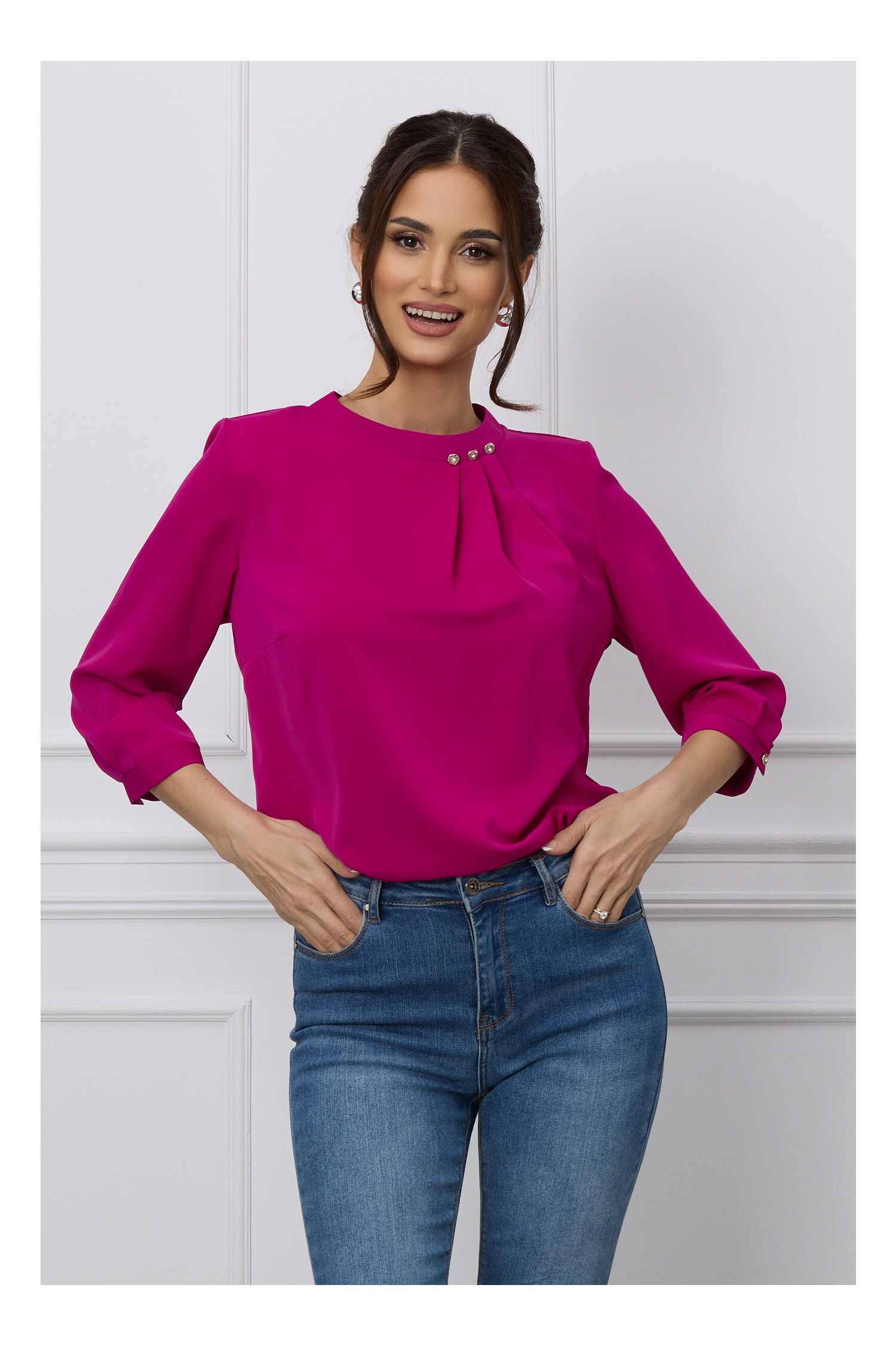 Specification: Bluza Ami magenta cu pliuri pe bust