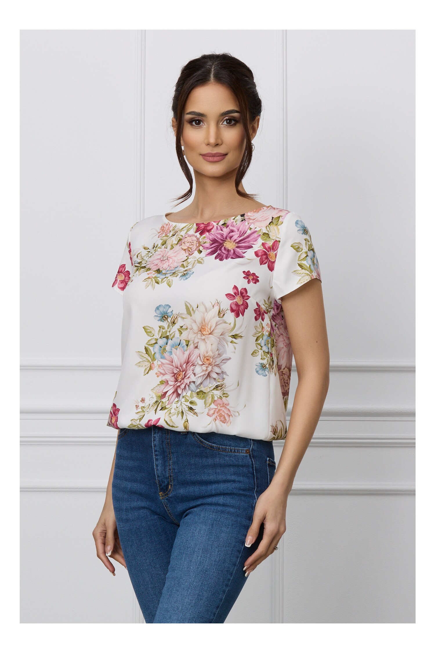Specification: Bluza Iuliana alba cu flori rosii