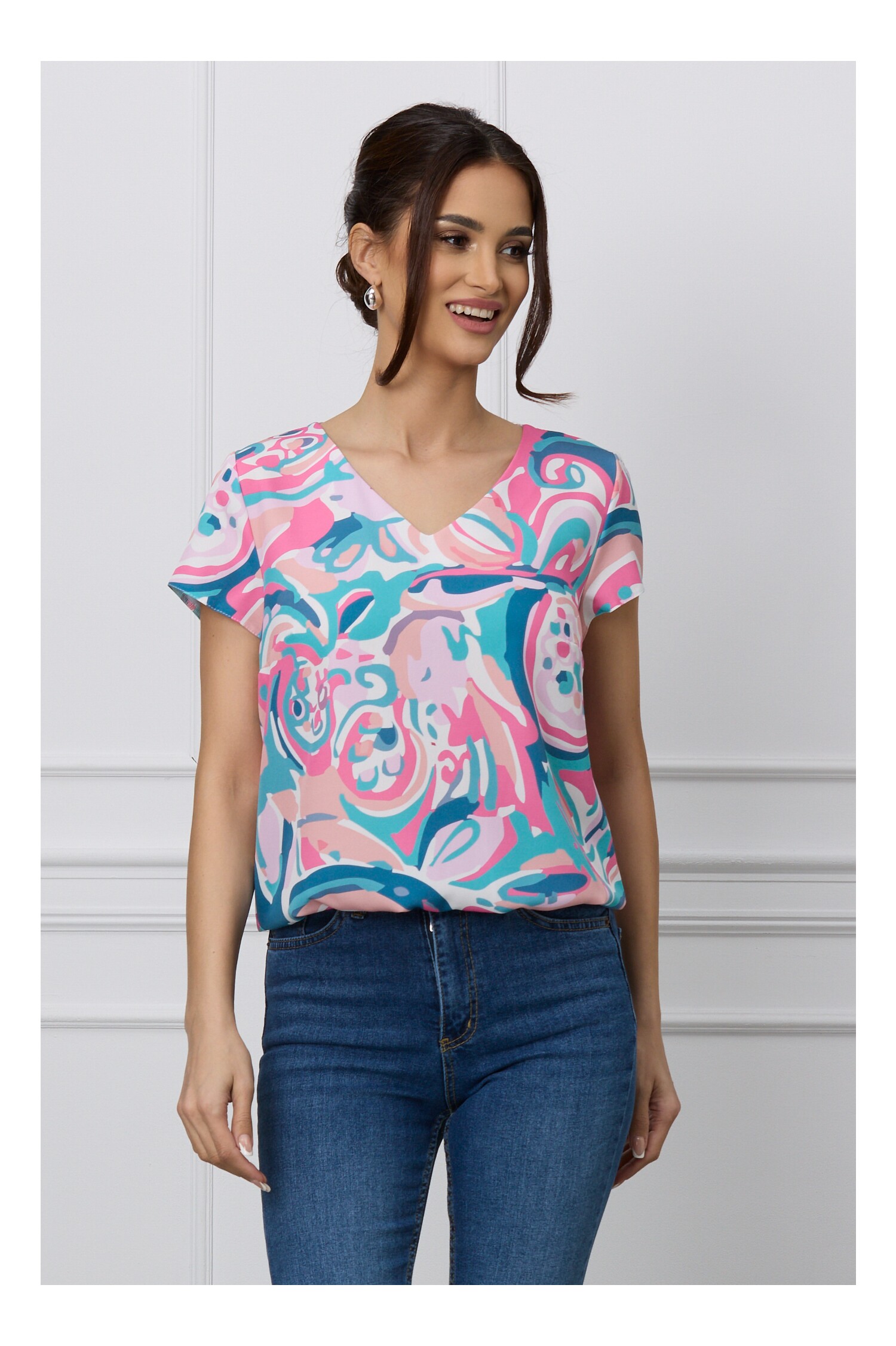 Specification: Bluza Iuliana cu imprimeuri roz si turcoaz