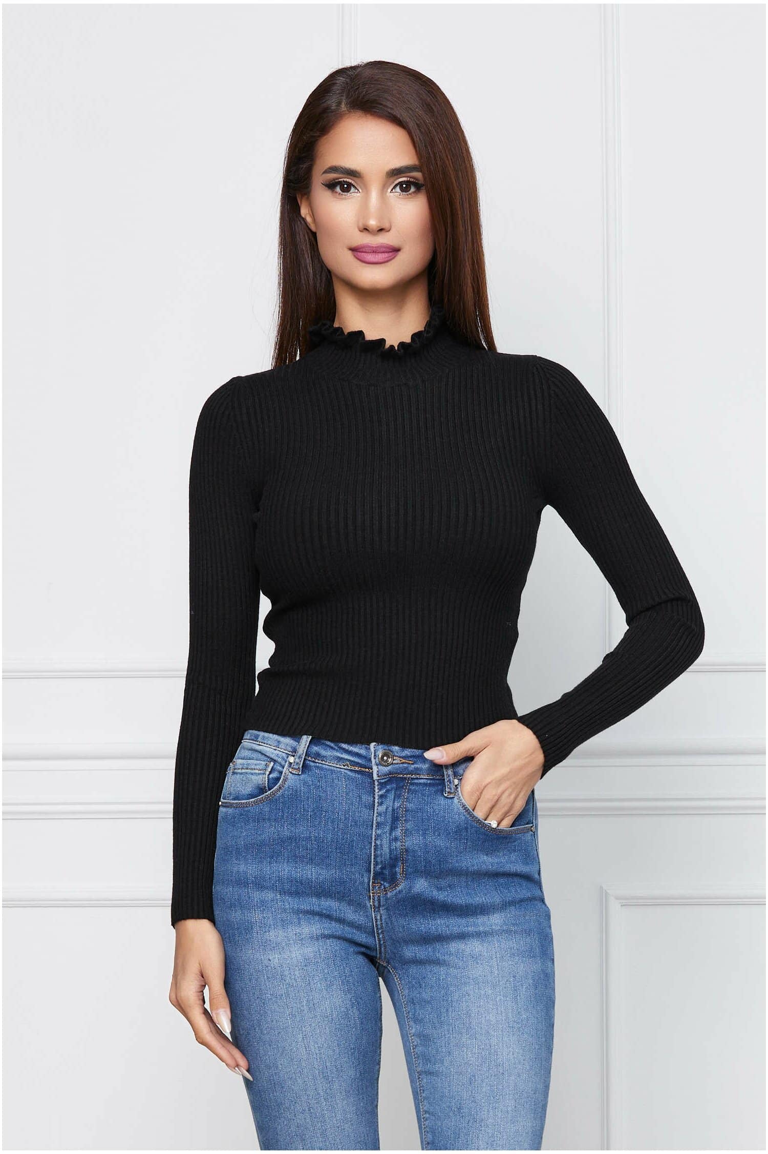 Bluza Lary neagra scurta din tricot reiat ! Transport si retur gratuite indifernet de valoarea comenzii!