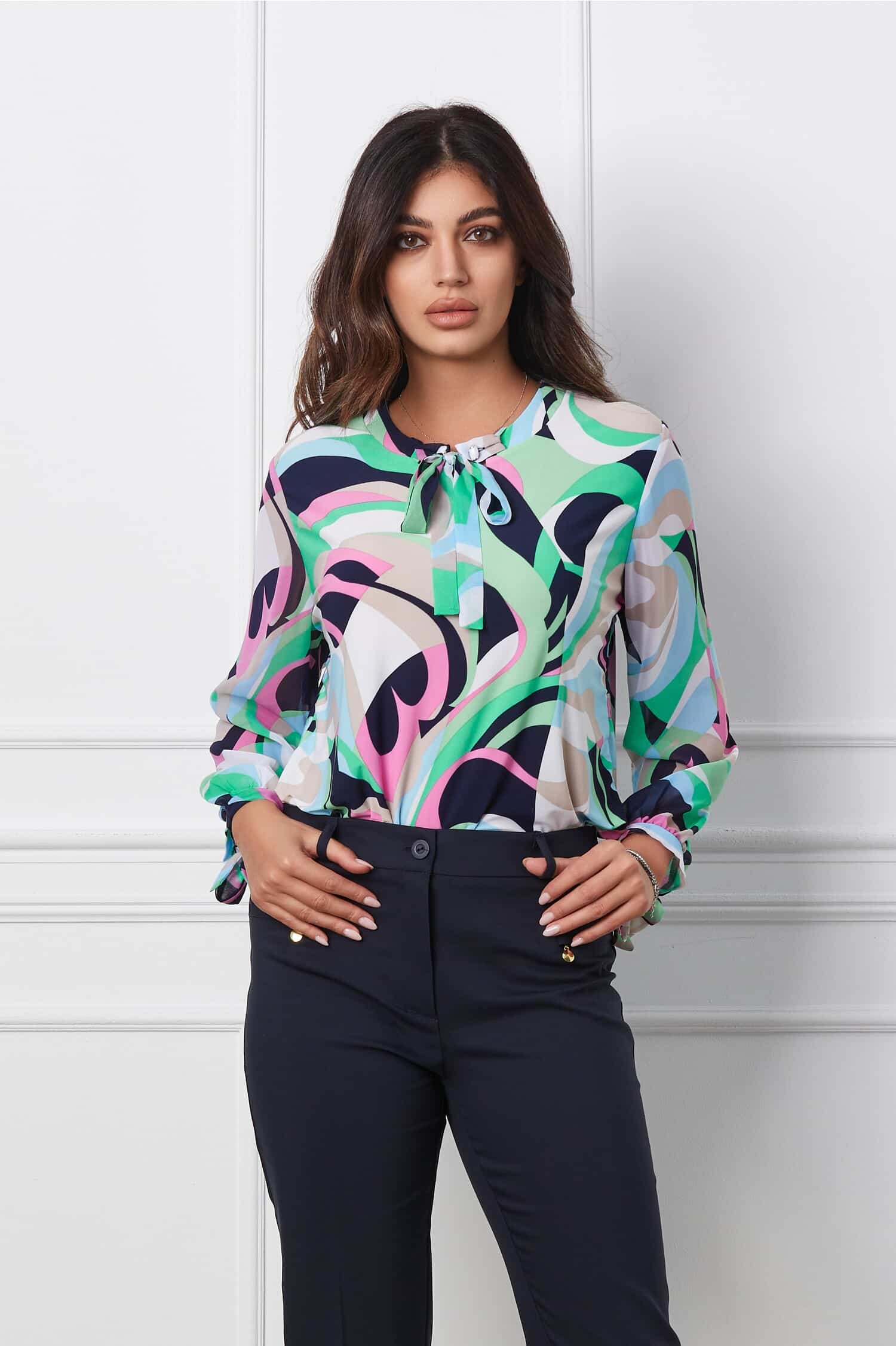 Bluza Manuela verde cu imprimeu bleu si bej ! Transport si retur gratuite indifernet de valoarea comenzii!