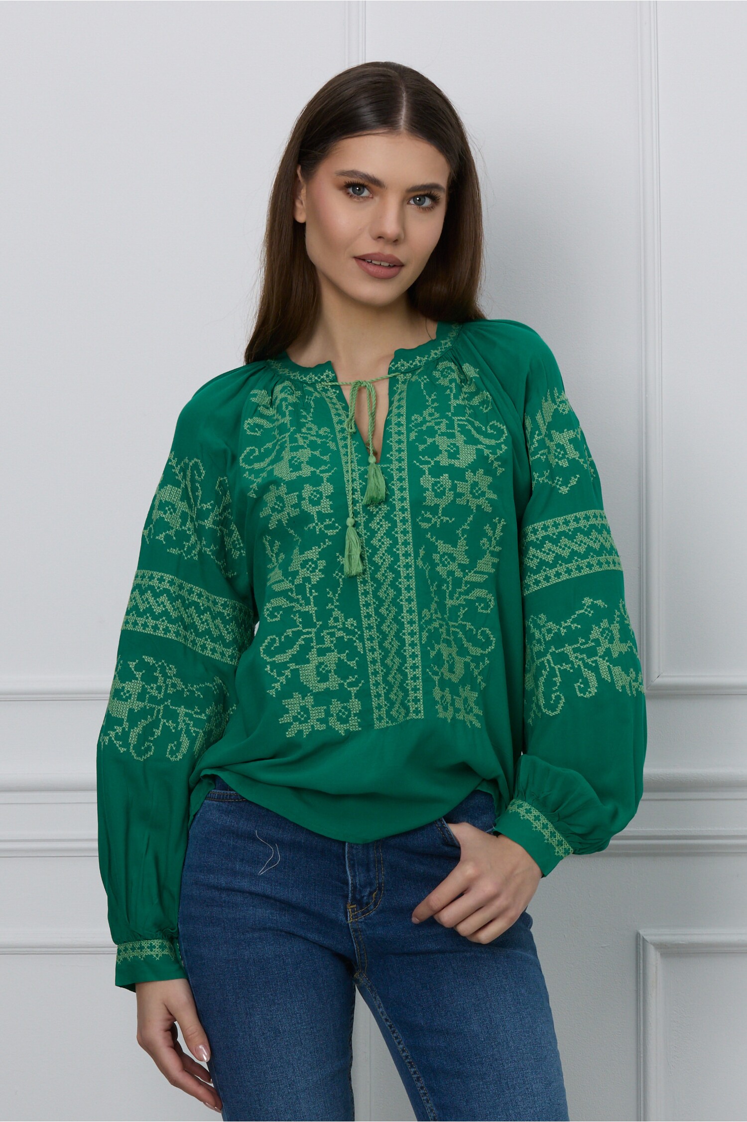 Bluza Mara verde cu broderie! La acest produs ai transport si retur gratuite!