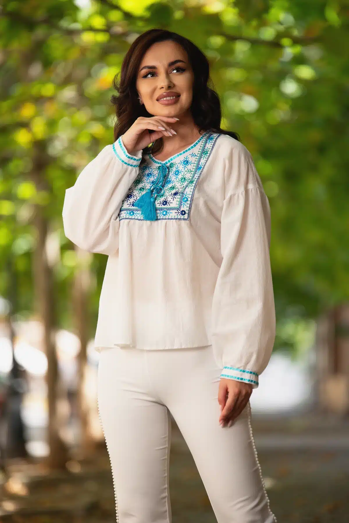 Bluza tip ie din bumbac cu broderie bleu! Cost curierat oriunde in ROMANIA -15 lei! Livrare in EASYBOX – 10 lei! Livram in UE.