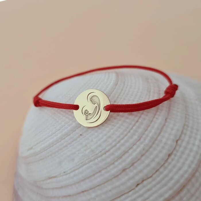 Bratara banut de 10 mm – Maica Domnului si Pruncul Sfant – Aur Galben 14K – snur reglabil