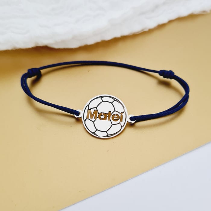 Bratara banut minge de fotbal cu nume decupat – Argint 925 – snur reglabil ! Transport si retur gratuite indifernet de valoarea comenzii!