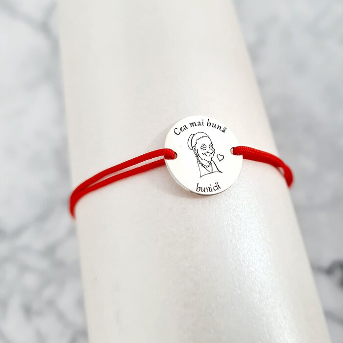 Bratara banut personalizata – Cea mai buna bunica – Argint 925, snur reglabil ! Transport si retur gratuite indifernet de valoarea comenzii!