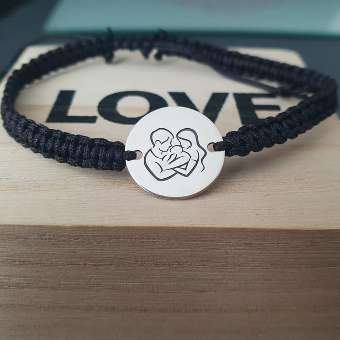 Specification: Bratara banut personalizata – Proaspeti parinti – Argint 925, snur negru impletit
