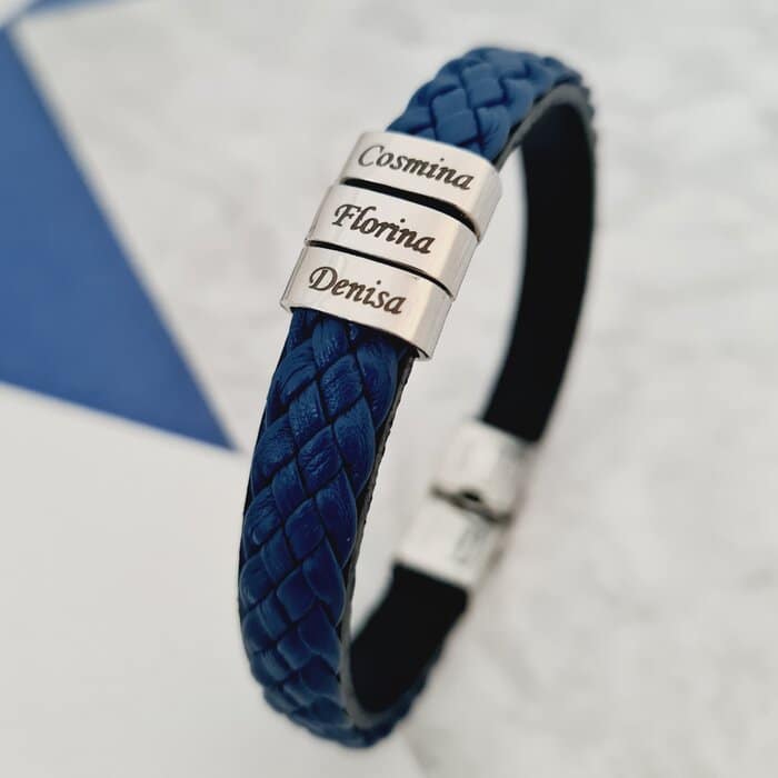 Be the first to review “Bratara barbateasca Blue Sky – 3 Elemente inox arginti – Piele impletita albastra cu inchizatoare clips din inox”