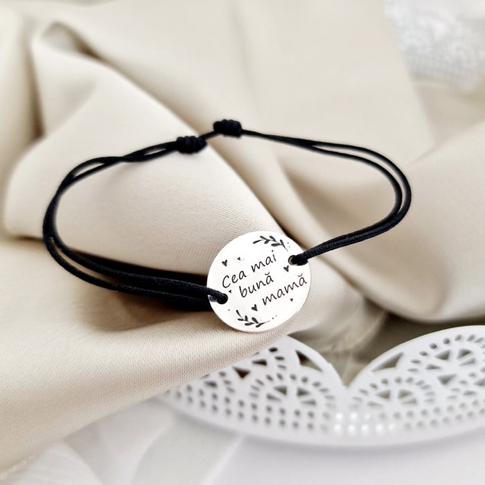 Specification: Bratara Cea mai buna mama – Argint 925, snur negru