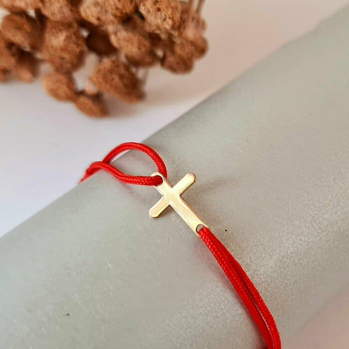 Crucea este unul din cele patru simboluri fundamentale alaturi de cerc, centru si patrat. Aceasta simbolizeaza pamantul, soarele, cele patru puncte cardinale, fiind totodata asemanata cu simbolul omului deschizandu-si bratele si imbratisandu-l de Dumnezeu. Un cadou deosebit!  DESPRE PRODUS: Pandantul este creat din Aur Galben de 14K. Dimensiunea pandantului este de 12×9 mm. Bratara este creata dintr-un snur din matase vegetala, marime reglabila, potrivit pe orice incheietura. Bijuteria va ajunge la tine intr-un saculet elegant din catifea, impreuna cu certificatul de calitate ce atesta autenticitatea materialelor folosite.  Gramaj aproximativ AUR 14K  (585): 0.10 grame Aceasta bijuterie personalizata este realizata de la zero pentru fiecare comanda in parte. Dupa plasarea si confirmarea comenzii incepe procesul ei de creatie: Realizare Design -> Taiere/Personalizare -> Finisare manuala -> Polish Final -> Ambalare -> Livrare! Pretul produsului include pe langa costul gramului de Aur 14K si tot procesul de mai sus, necesar pentru realizarea unui produs cu adevarat special pentru tine. Datorita procesului de productie si a personalizarii bijuteriei dupa propria dorinta gramajul final al produsului poate fi diferit. Din acest motiv pe site este afisat gramajul obtinut prin catarirea produsului realizat in pozele de prezentare.  Toate produsele din Aur comercializate de Chic Bijoux sunt marcate cu titlul Aurului de 14K · 585 · Dupa plasarea comenzii veti fi contactat de o colega din echipa Chic Bijoux pentru toate detaliile necesare personalizari.