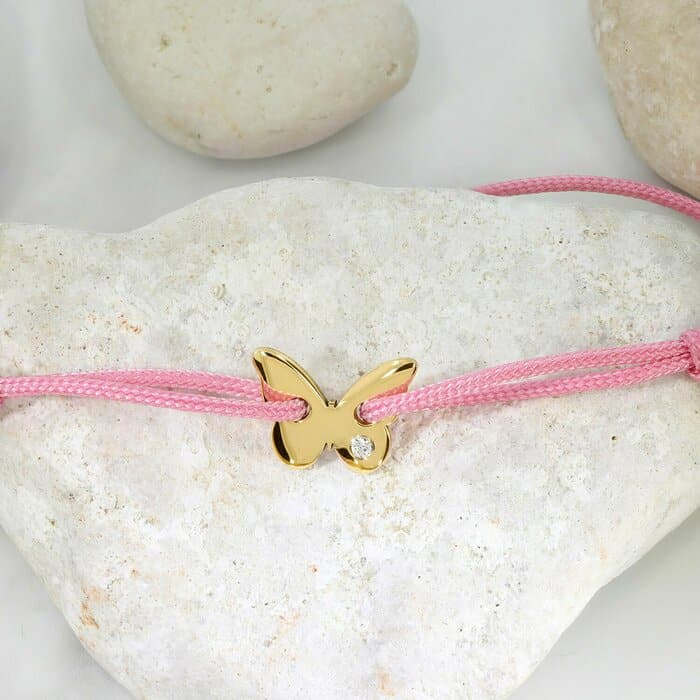 Bratara cu Diamant natural – Model fluture – Aur Galben/Roz/Alb 14K si snur reglabil