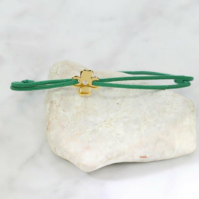 Specification: Bratara cu Diamant natural – Model trifoi – Aur Galben/Roz/Alb 14K si snur reglabil