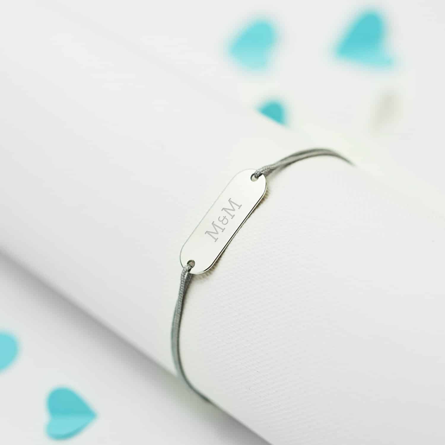 Bratara cu snur Placuta Ovala Silver din argint 23 mm cu text si simbol