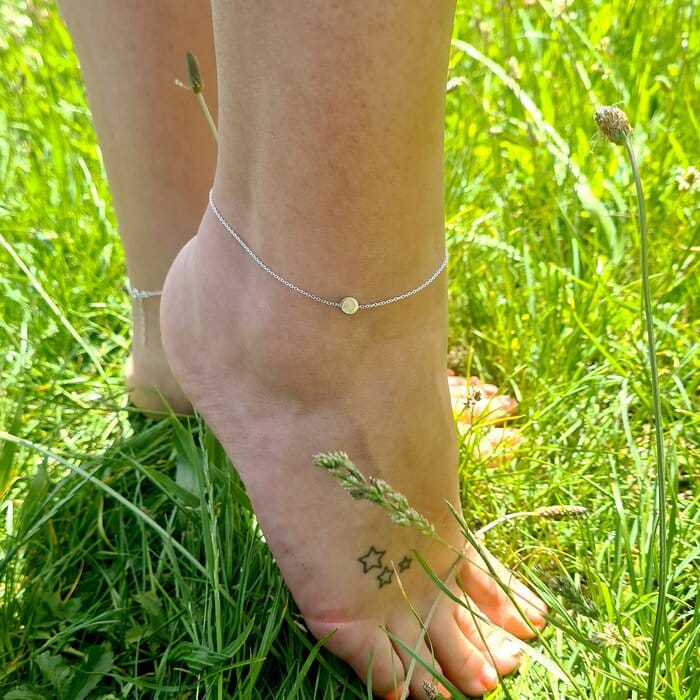 Bratara de picior – Rasarit de vara – Element banut – Argint 925 – Lantisor realizat pe marimi