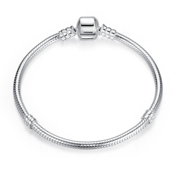 Bratara din argint 925 cu Model Clasic face parte din eleganta colectie Glamour. Detaliile impecabile fac ca bratara sa fie potrivita oricarei ocazii. Material: Argint 925, placat cu rodiu Circumferinta bratara: 16-20 cm Greutate: 13.7 g Aceasta bratara este atent lucrata si finisata cu model fin, inchizatoarea este mobila, rotunda, simpla si marcata pe interior. Bratara devine usor rigida atunci cand este inchisa si capata o forma rotunda pe incheietura mainii, de aceea va recomandam sa achizitionati o marime mai mare decat purtati in general. Â Compatibila cu talismanele din argint.