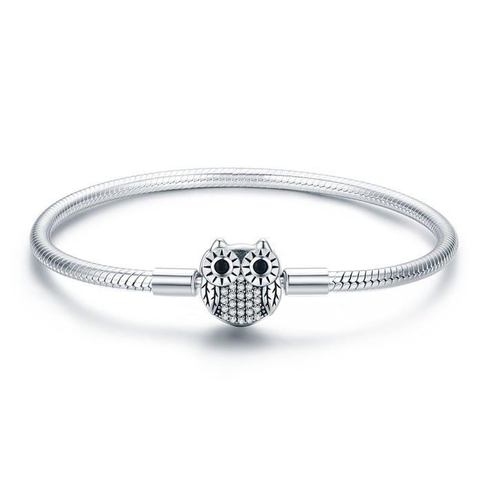 Bratara din argint 925 Precious Owl face parte din prietenoasa colectie Animalute. Stralucirea oferita de pietrele de zirconiu atent finisate si detaliile impecabile fac ca bratara sa fie potrivita oricarei ocazii. Aceasta bratara are o montura fixa, rigida si nu se pliaza pe incheietura mainii, de aceea va recomandam sa achizitionati o marime mai mare decat purtati in general. Compatibila cu talismanele din argint.  Material: Argint 925, placat cu rodiu Dimensiune bratara: 17 cm / 18 cm / 19 cm / 20 cm Dimensiune element inchizatoare: 1.1 cm   Produsul vine insotit de certificat de garantie, valabil 2 ani de la data achizitiei. De asemenea, veti primi inclus si cutiuta de cadou in care produsul dumneavoastra va fi ambalat cu multa grija.  Â