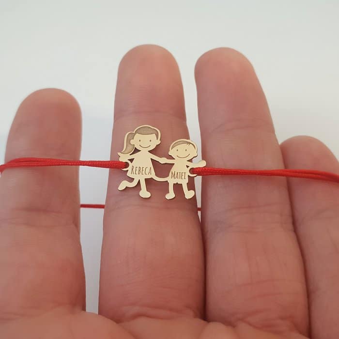 Specification: Bratara Familie – 2 Membri – pandant Aur Galben 14K – snur matase vegetala reglabil
