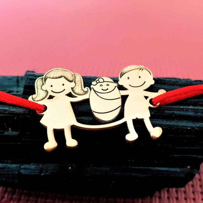 Specification: Bratara Familie 3 membri cu bebe – pandant Argint 925 placat cu Aur 14K – snur matase vegetala reglabil