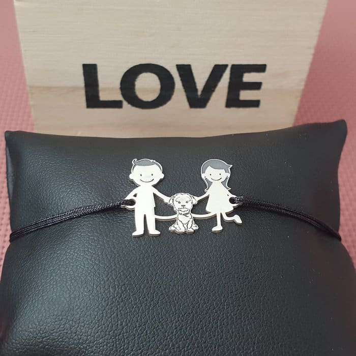 Specification: Bratara Familie – 3 Membri cu Bichon – Argint 925, snur negru