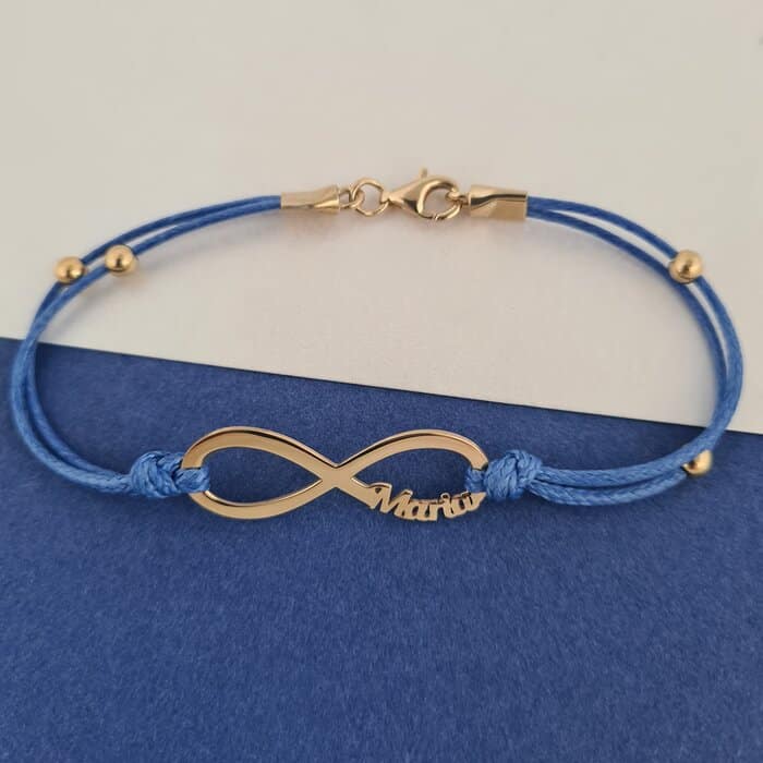 Specification: Bratara Infinit cu 1 nume decupat si 4 bilute de 4 mm – Argint 925 placat cu Aur Galben 18K – Snur dublu rezistent si inchizatoare tip carabina