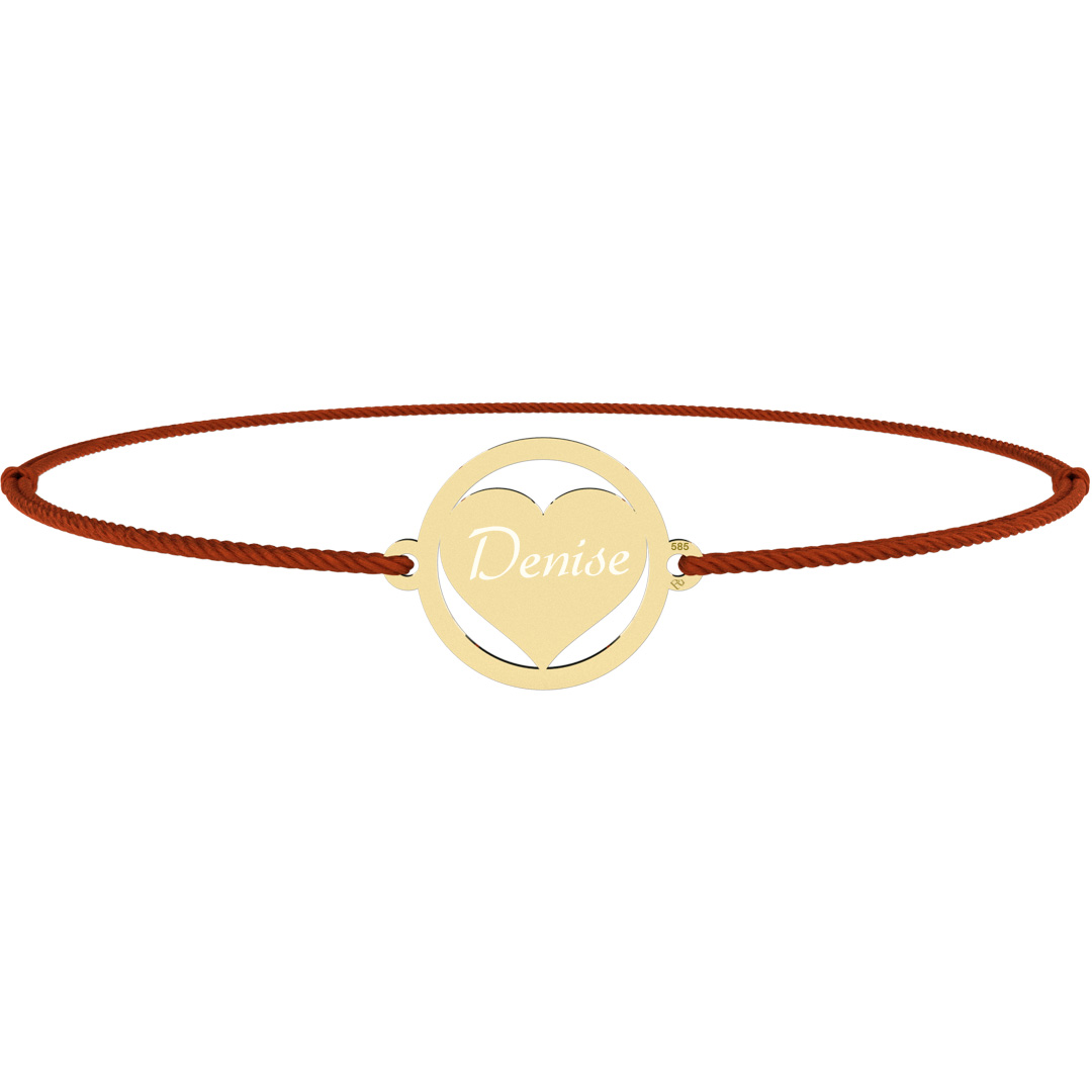 Bratara inima in rama din aur galben, alb sau roz de 14K si snur reglabil