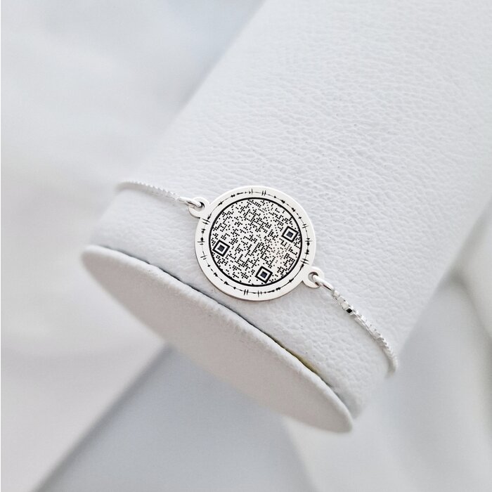 Specification: Bratara Iubire transmisa – Banut 16 mm cu amprenta vocala si Qr Code – Argint 925 – Lant glisant