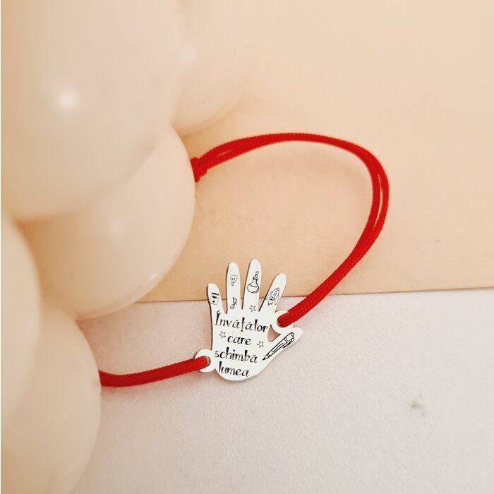 Specification: Bratara Mana premiata de Educatoare/Invatatoare – Argint 925 – Snur reglabil, diverse culori