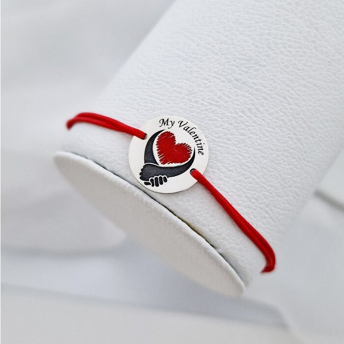 Bratara My Valentine – Banut 15 mm cu inima cu email rosu – Argint 925 – Snur reglabil