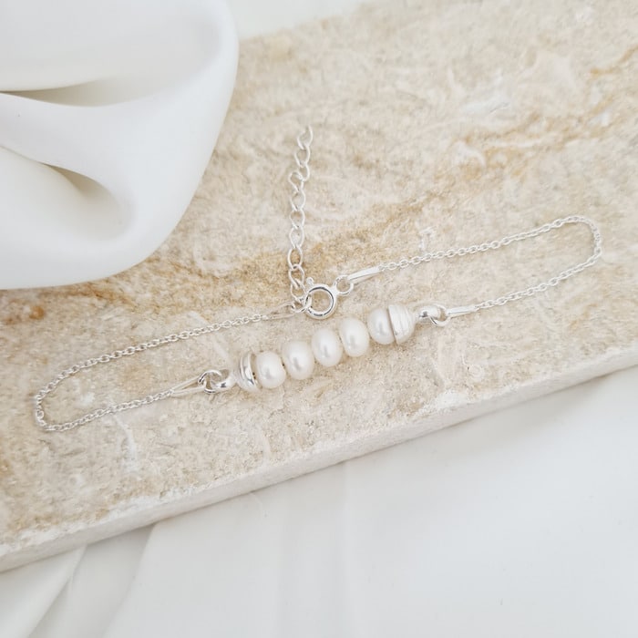 Specification: Bratara Perle – Gratie fermecatoare – Model 5 perle cu lantisor – Argint 925