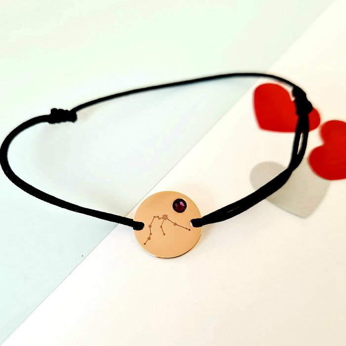 Bratara personalizata cu propria constelatie a zodiei tale este alternativa minunata pentru clasicele si banalelor semne zodiacale. Alege culoarea preferate pentru cristalul Swarovski, selecteaza zodia ta iar noi iti vom crea o bijuterie incantatoare!  DESPRE PRODUS: Banutul este creat din Argint placat cu Aur Galben 18K (585). Diametrul banutului este de 12 mm. Bratara este creata dintr-un snur din matase vegetala, marime reglabila, potrivit pe orice incheietura. Cristalul Swarovski atasat poate fi ales in functie de culoarea preferata sau dupa luna nasterii. Culorile cristalelor Swarovski sunt asociate pietrelor norocoase ale lunii de nastere. Descopera piatra lunii in care te-ai nascut in poza explicativa. Pe fata, pandantivul este gravat cu constelatia corespunzatoare zodiei. Daca iti doreti si alteceva inscriptionat (nume, data, mesaj) poti selecta casuta pentru personalizare spate. Gramaj aproximativ ARGINT 925: 0.75 grame Aceasta bijuterie personalizata este realizata de la zero pentru fiecare comanda in parte. Dupa plasarea si confirmarea comenzii incepe procesul ei de creatie:  Realizare Design -> Taiere/Personalizare -> Finisare manuala -> Polish Final -> Ambalare -> Livrare! Datorita procesului de productie si a personalizarii bijuteriei dupa propria dorinta gramajul final al produsului poate fi diferit. Din acest motiv pe site este afisat gramajul obtinut prin catarirea produsului realizat in pozele de prezentare. Pretul produsului include pe langa costul gramului de Argint 925 si tot procesul de mai sus, necesar pentru realizarea unui produs cu adevarat special pentru tine.   Toate produsele din Argint 925 comercializate de Chic Bijoux sunt marcate cu titlul Argintului· 925 · Dupa plasarea comenzii veti fi contactat de o colega din echipa Chic Bijoux pentru toate detaliile necesare personalizarii produsului. Â
