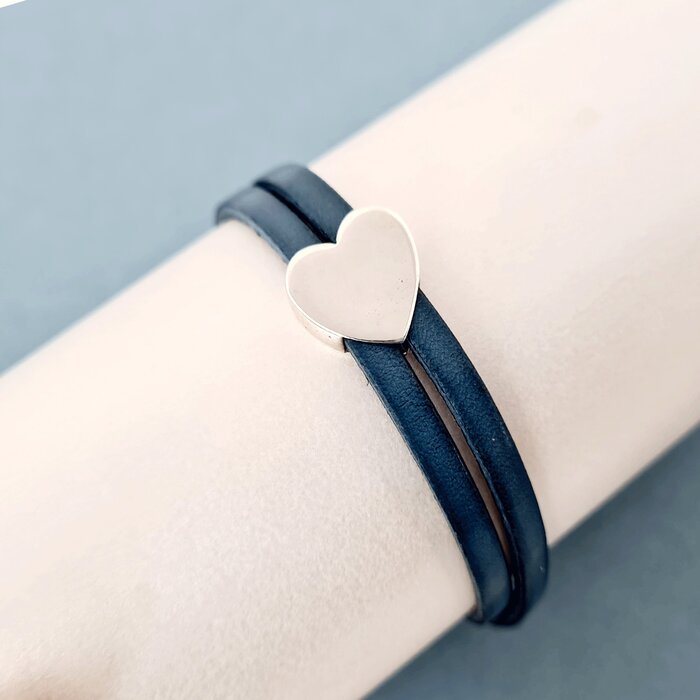 Specification: Bratara personalizata cu Charm 3D Inima – Argint 925 cu aspect mat – 2 straturi de piele – Inchizatoare clips din otel inoxidabil