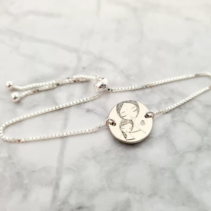 Specification: Bratara personalizata cu Diamant natural – Mama si fiica – Lantisor glisant ajustabil – Argint 925