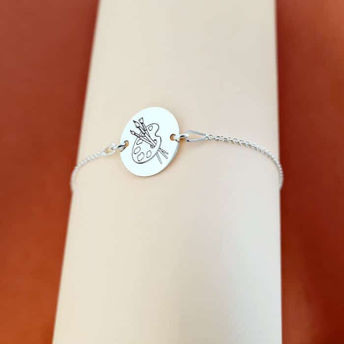 Specification: Bratara personalizata cu simbol materie scoala – Desen – Banut de 15 mm cu lantisor – Argint 925