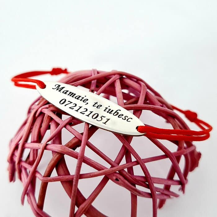 Ofera un cadou din suflet pentru bunica, bunicul sau alti membri ai familiei, o bratara gravata cu un mesaj special. Chiar si numarul tau de telefon poate fi gravat pe bijuterie, astfel ca cei pe care ii iubesti sa te poata contacta usor si rapid de oriunde ar fi.   DESPRE PRODUS: Pandantul este creat din Argint 925. Dimensiunea lui este de 8×28 mm. Bratara este creata dintr-un snur reglabil, diverse culori, potrivit pe orice incheietura. Gravarea unui nume, a unei date sau a unui mesaj scurt pe verso este gratuita.  Dupa plasarea comenzii veti fi contactat de o colega din echipa Chic Bijoux pentru toate detaliile necesare personalizarii produsului.