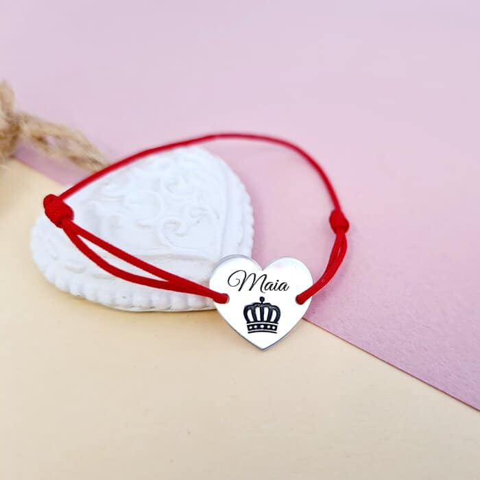 Be the first to review “Bratara personalizata – Pandantiv inima cu nume si coroana – Argint 925 – snur reglabil”