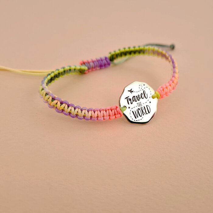 Bratara personalizata – Travel – Argint 925 – Snur impletit multicolor