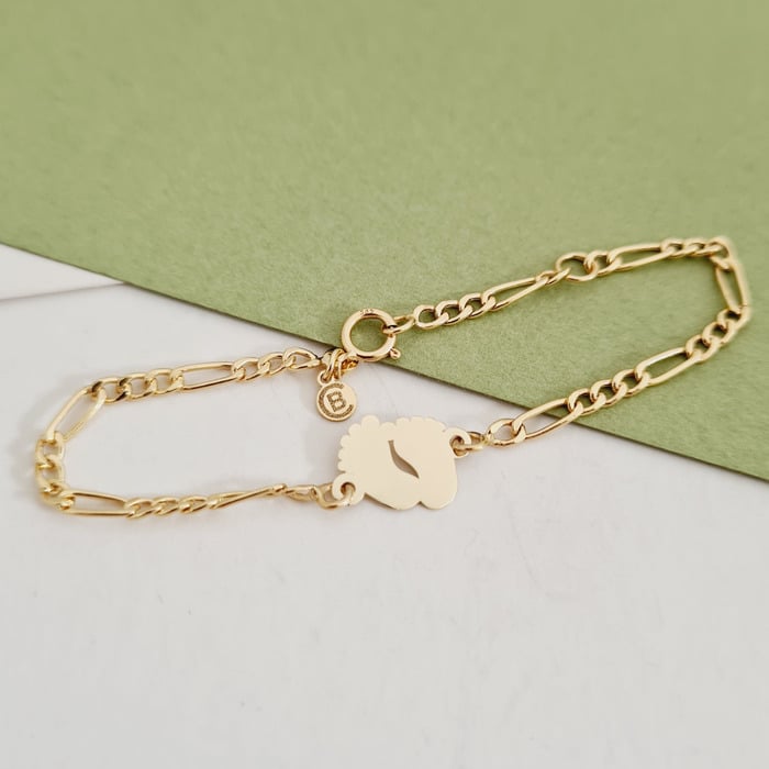 Specification: Bratara picioruse – Aur Galben 9K – Cu lantisor fata/baiat
