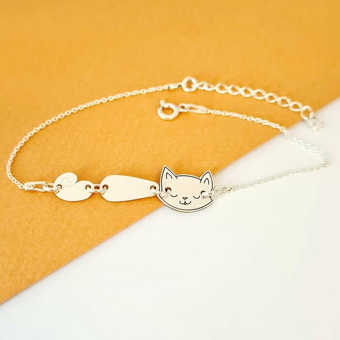 Specification: Bratara pisica unita – Cap, corp si coada – Argint 925 – cu lantisor
